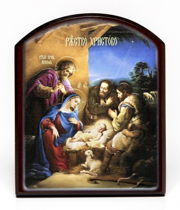 Икона на доске 10х12 объёмная печать, арочная, лак Рождество Христово 2