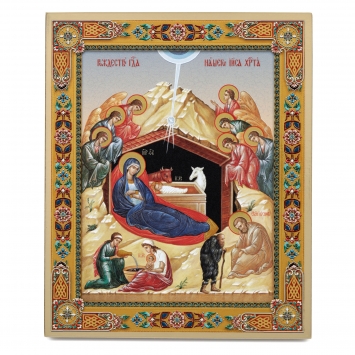 Икона на деревянном планшете 18х24 двойное тиснение, ДСП, ПВХ, БЗГ, упаковка Рождество Христово 40