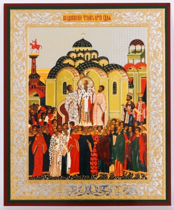 Икона на деревянном планшете 30х40 двойное тиснение, ДСП, ПВХ Воздвижение Креста Господня 2