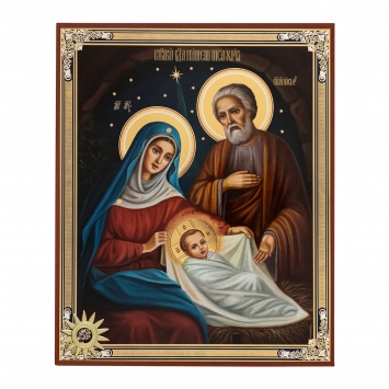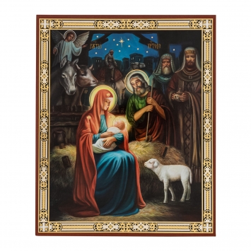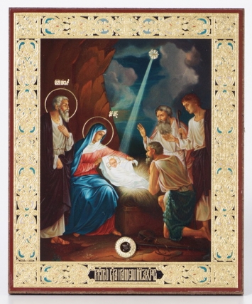 Икона на деревянном планшете 11х13 двойное тиснение (18мм), БЗГ, упаковка Рождество Христово 66