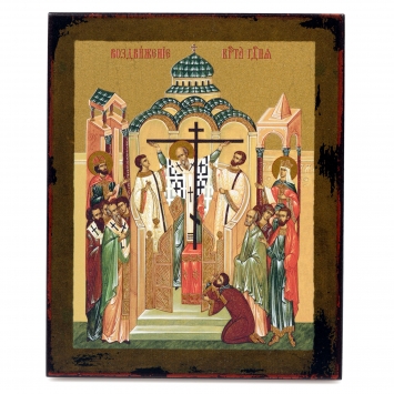 Икона на дереве 13х16 лак №2 Воздвижение Креста Господня