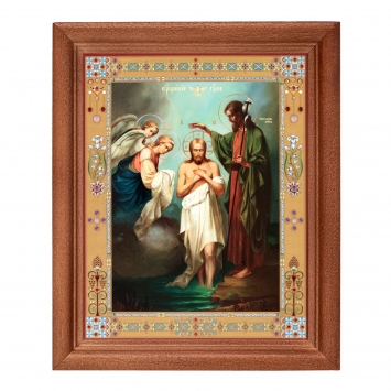 Икона в деревянной рамке №1 11х13 двойное тиснение Крещение Господне 3