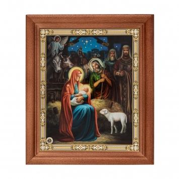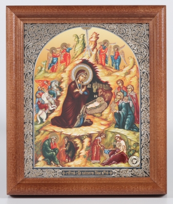 Икона в деревянной рамке №1 11х13 двойное тиснение, БЗГ, упаковка Рождество Христово 67