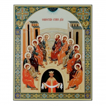 Икона на доске 33х40 объемная печать, лак Сошествие Святого Духа