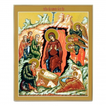 Икона на доске 18х24 золоченое покрытие, объёмная печать, лак Рождество Христово (Рублевское)
