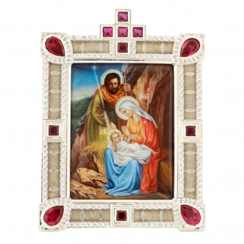 Икона настольная №155 / Фианиты деколь, эмаль / серебрение / Рождество Христово