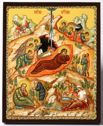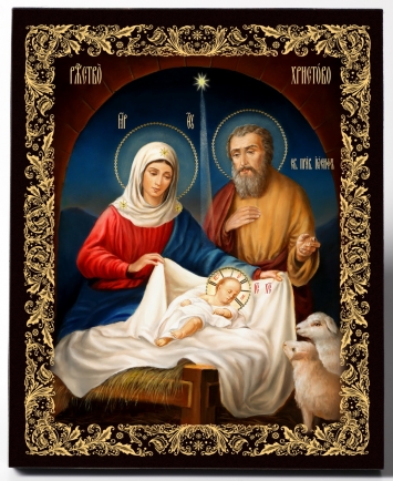 Икона на доске 30х40 объемная печать, лак №1 Рождество Христово