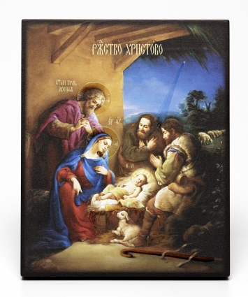 Икона на доске 22х26 объёмная печать, лак Рождество Христово 4