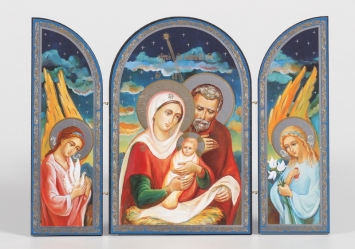 Складни деревянные 18х24 трехстворчатые, двойное тиснение, арочные, в упаковке Рождество Христово 3