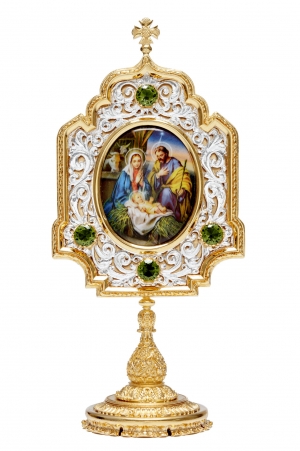 Икона настольная №6 деколь / золочение, серебрение / Рождество Христово