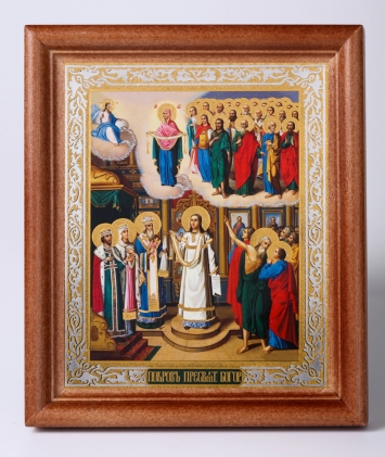 Икона в деревянной рамке №1 18х24 двойное тиснение Покров (поясной)