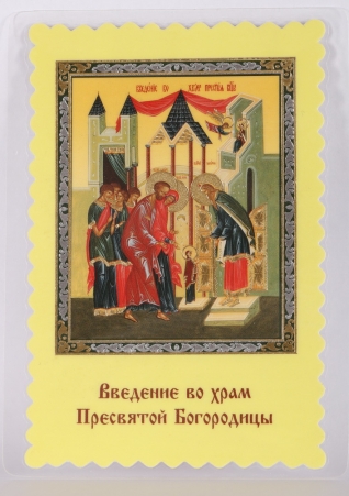 Икона в жесткой ламинации 8х11 с оборотом, двойное тиснение, высечка Введение во храм Пресвятой Богородицы