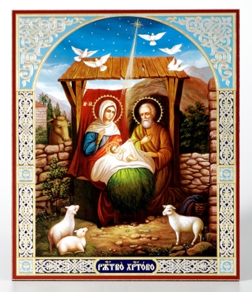 Икона настольная №6 деколь / золочение, серебрение / Рождество Христово 2