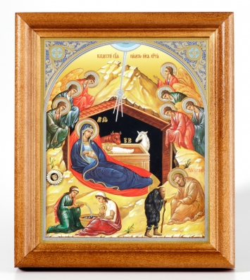 Икона в деревянной рамке №1 11х13 двойное тиснение Рождество Христово 35