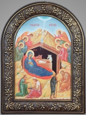 Икона в пластмассовой рамке 18х24 арочная патинирование Рождество Христово 3