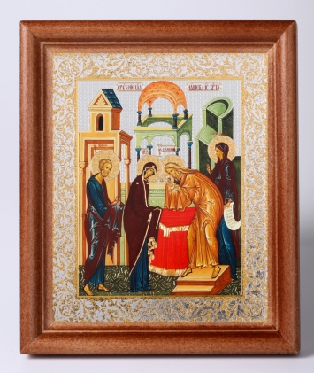 Икона в деревянной рамке №1 11х13 двойное тиснение Сретение Господне
