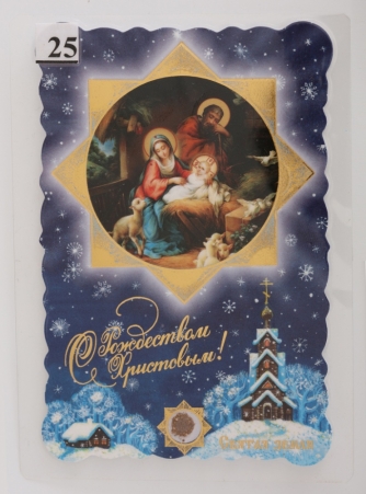 Икона в жесткой ламинации 8х11 с оборотом, тиснение, высечка, частица земли Рождество Христово 25