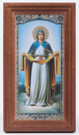 Икона в деревянной рамке №1 7 х14 двойное тиснение Покров (ростовой) 2