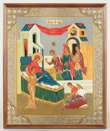 Икона в деревянной рамке №1 11х13 двойное тиснение Рождество Богородицы