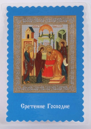 Икона в жесткой ламинации 8х11 с оборотом, двойное тиснение, высечка Сретение Господне