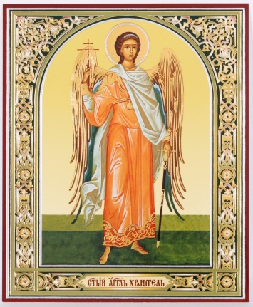 Икона на дереве 18х50 арочная, канвас, упаковка Ангел-Хранитель (ростовой)