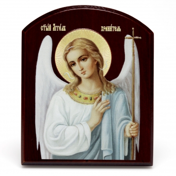 Икона на деревянном планшете 11х13 двойное тиснение, арочная Ангел-Хранитель (ростовой) №2