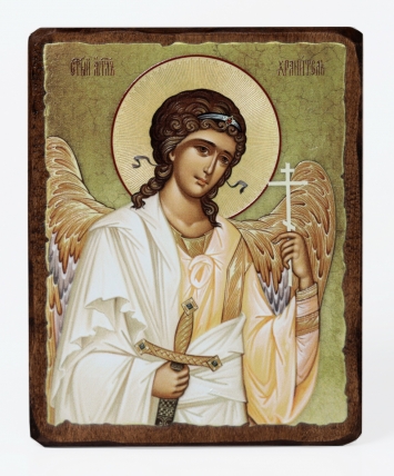 Икона на доске 9х11 объемная печать, лак Ангел Хранитель 3
