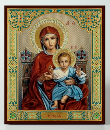 Икона на доске 22х26 объёмная печать, лак Богородица на троне