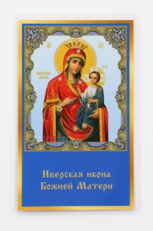 Икона в жесткой ламинации 5х8 с оборотом Иверская БМ