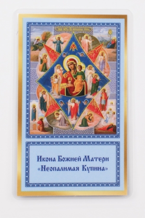 Икона в жесткой ламинации 5х8 с оборотом Неопалимая Купина