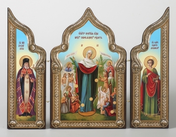 Складни деревянные 18х24 трехстворчатые, тиснение, арочные, фигурные, в упаковке Всех скорбящих Рад. с грошик. - Пантелеимон - Лука