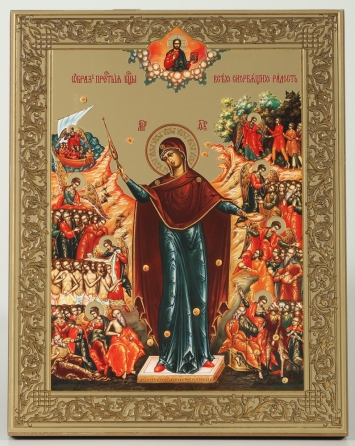 Икона на деревянном планшете 21х32 ДСП конгрев, упаковка Всех скорбящих Радость (с грошиками)
