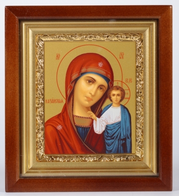 Икона в деревянной рамке №1 11х13 двойное тиснение Казанская БМ 31