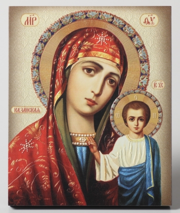 Икона на доске 22х26 объёмная печать, лак Казанская Чимеевская БМ