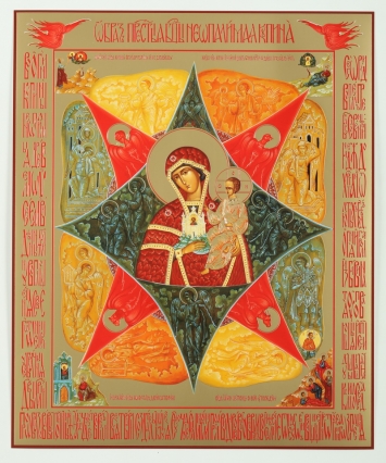 Икона на деревянном планшете 6х9 двойное тиснение, аннотация, упаковка Нечаянная Радость 3