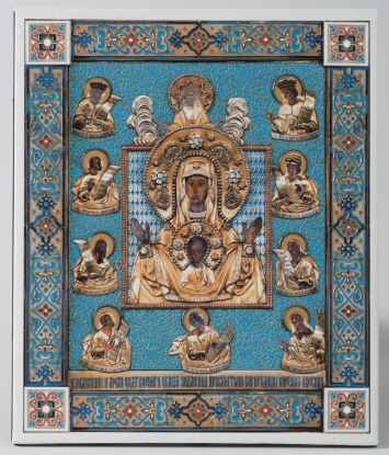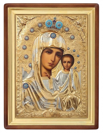 Икона живописная в киоте 75х105 масло, риза №169, эмаль, киот №1 Казанская БМ
