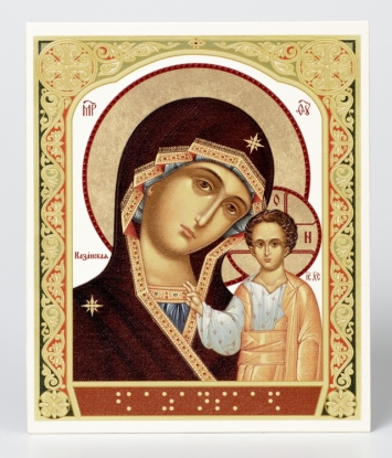 Икона настольная 11х13 на подставке, объемная печать (для людей с нарушением зрения) Казанская БМ