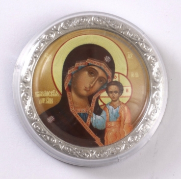 Икона в пластмассовой рамке 4х5 круглая Казанская БМ 2