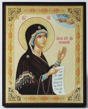 Икона на деревянном планшете 6х9 двойное тиснение, аннотация, упаковка Всецарица 2