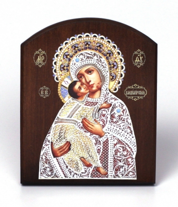 Икона на доске 10х12 объёмная печать, арочная, лак Владимирская БМ