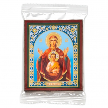 Икона на деревянном планшете 6х9 двойное тиснение, аннотация, упаковка Знамение
