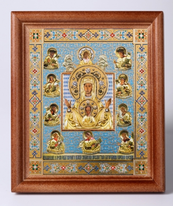Икона в деревянной рамке №1 11х13 двойное тиснение Знамение Курско-Корен. иконы на гол.фоне
