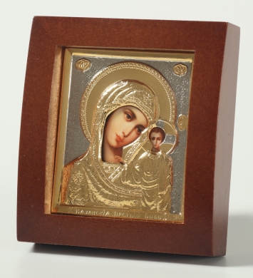 Икона в киоте 6х7 фигурный №2 риза объемная, частично золочёная Казанская БМ