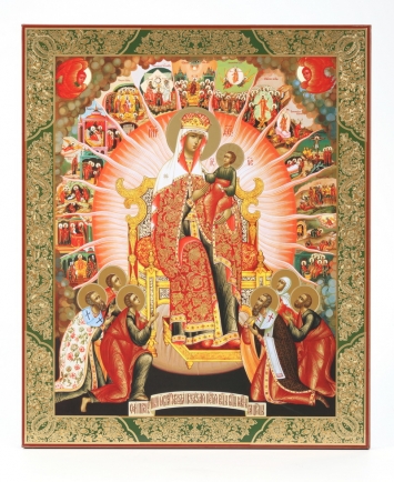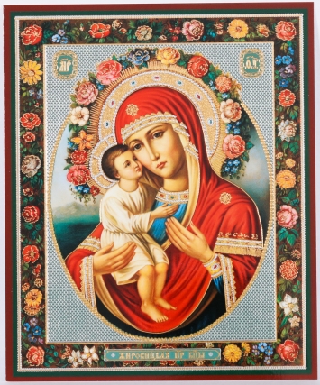 Икона в жесткой ламинации 8х11 с оборотом, двойное тиснение, высечка Всецарица