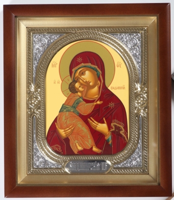 Икона в киоте 18х24 сложный, темпера, риза-рамка №1 Владимирская БМ