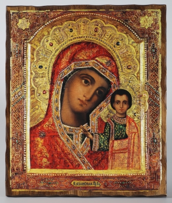 Икона в киоте 18х24 фигурный, фото, риза объёмная №1 Казанская БМ