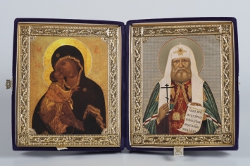 Складень в футляре 18х24 бархат, двойное тиснение, рамка золочёная Донская БМ - Тихон