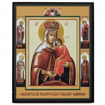 Икона в жесткой ламинации 5х8 с оборотом Трех радостей БМ