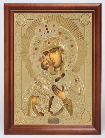 Икона в деревянной рамке №1 18х24 двойное тиснение Владимирская БМ 01