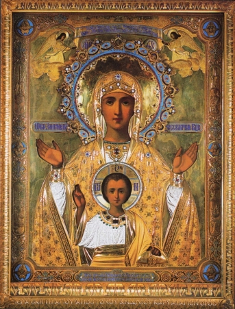 Икона живописная в киоте 22х26 масло, риза №296, киот №1 Почаевская БМ